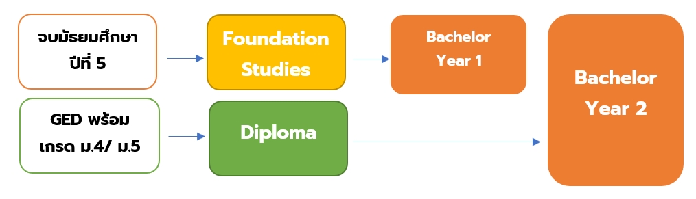หลักสูตร Foundation Studies คือหลักสูตรปรับพื้นฐานเพื่อเตรียมความพร้อมสำหรับนักเรียนที่จบ ม.5 หรือ ม.6 โดยเป็น Pathway สู่ระดับปริญญาตรี ปี 1