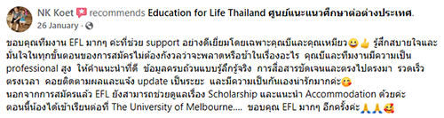 ความประทับใจจากผู้ปกครองและนักเรียนที่เลือกใช้บริการ แนะแนวศึกษาต่อต่างประเทศ กับ EFL